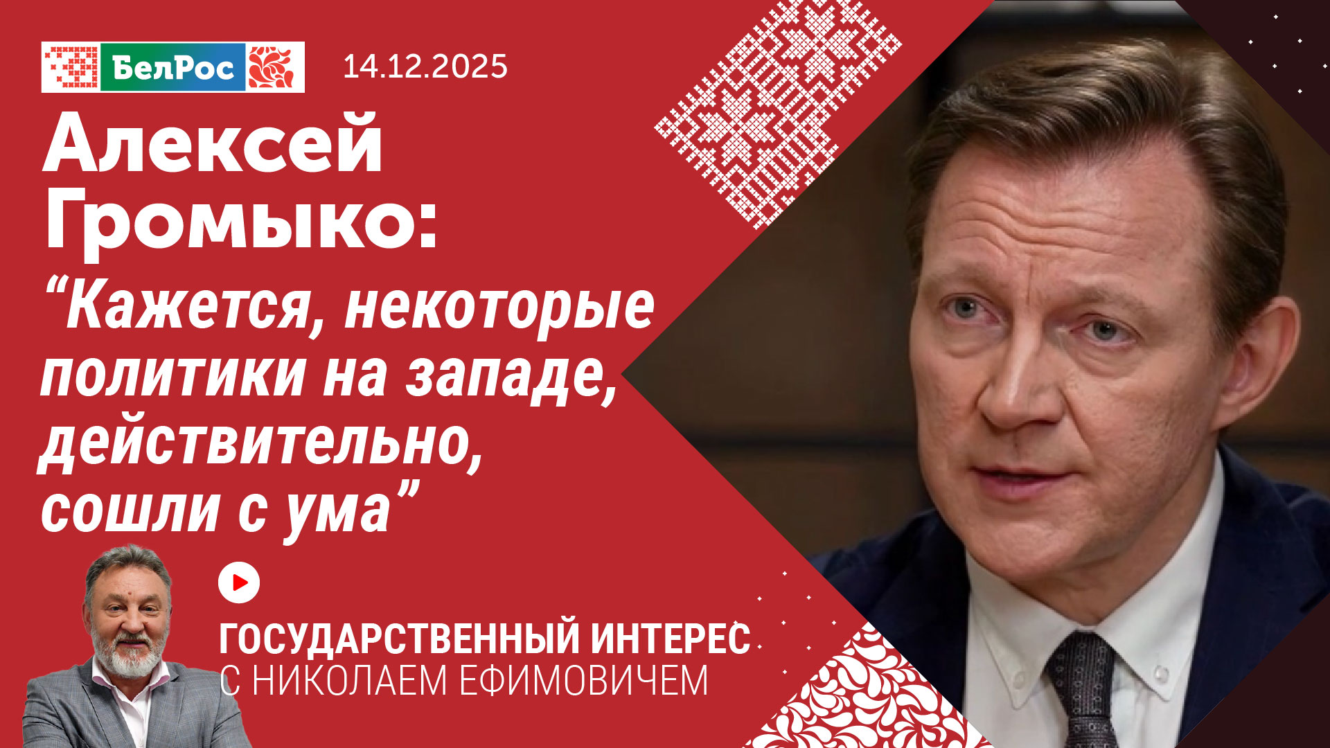 В программе "Государственный интерес" с директор Института Европы РАН, продолжателем знаменитой династии, обсудим самые острые вопросы современной политики
